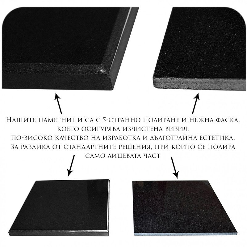 Мемориална плоча от черен гранит или бял мрамор, персонализирана с детайлна гравюра на портрет и текст. Изработена с висококачествени материали, осигуряващи дълготрайност и устойчивост на външни условия. Подходяща за поставяне на открито или в закрити мемориални пространства.