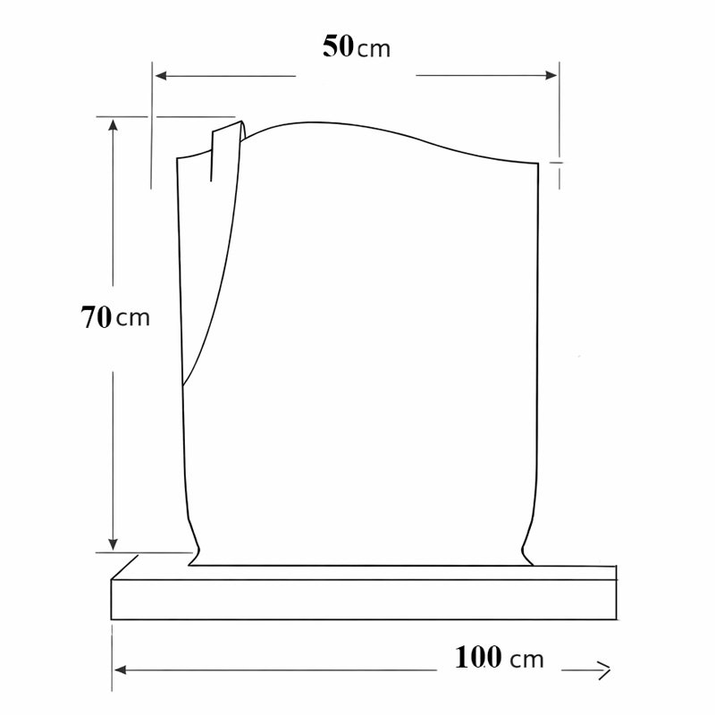 Основната плоча е с размер 70 × 50 см и дебелина 6 см, монтирана върху стабилна мраморна поставка 100 см, което осигурява здравина и устойчивост във времето. Паметникът включва декоративна ваза, подходяща за свежи или изкуствени цветя, както и керамична снимка, устойчива на атмосферни условия и избледняване.