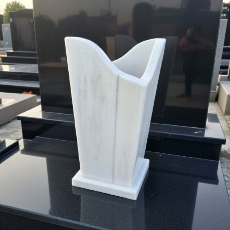 Мраморната ваза е практичен и естетичен избор за поддържане на подреден и уважителен вид на гробното място, символизиращ почит и непреходна памет.