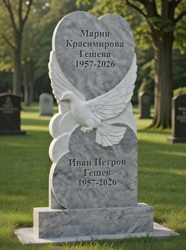 Този паметник с гълъб и сърца е красиво и достойно решение за съхраняване на спомена, съчетаващо символика, нежност и уважение към паметта на близък човек.